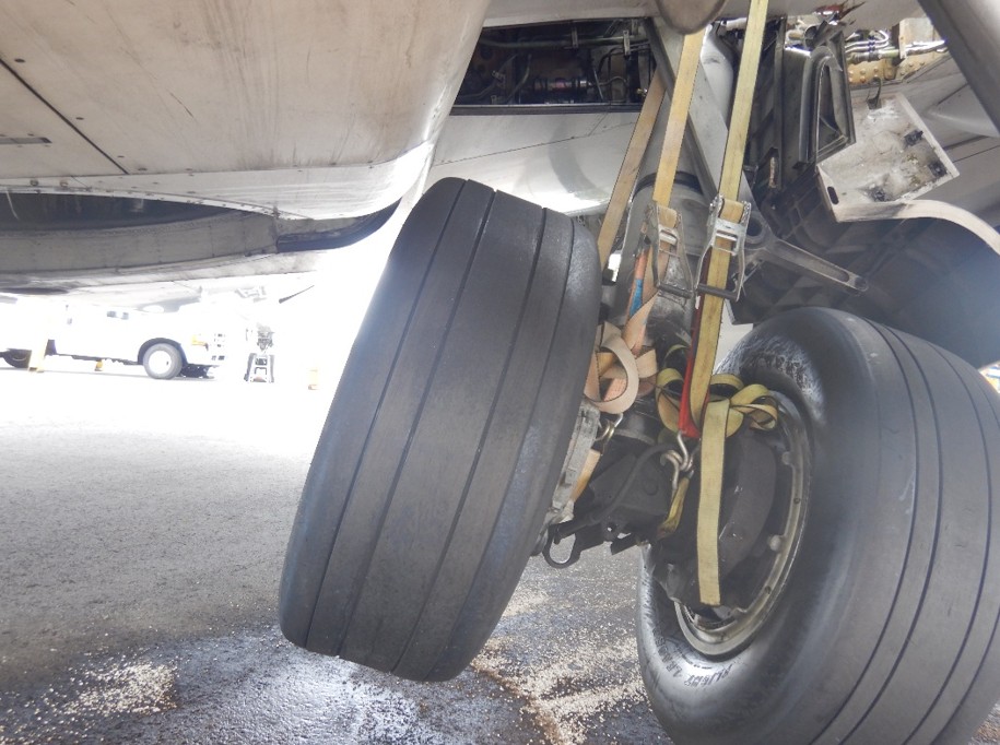 - During the aircraft examination, the right gear aft trunnion pin was found fractured. The two portions of the aft trunnion pin were sent to the TSB Engineering Laboratory in Ottawa, Ontario, and are awaiting further examination.