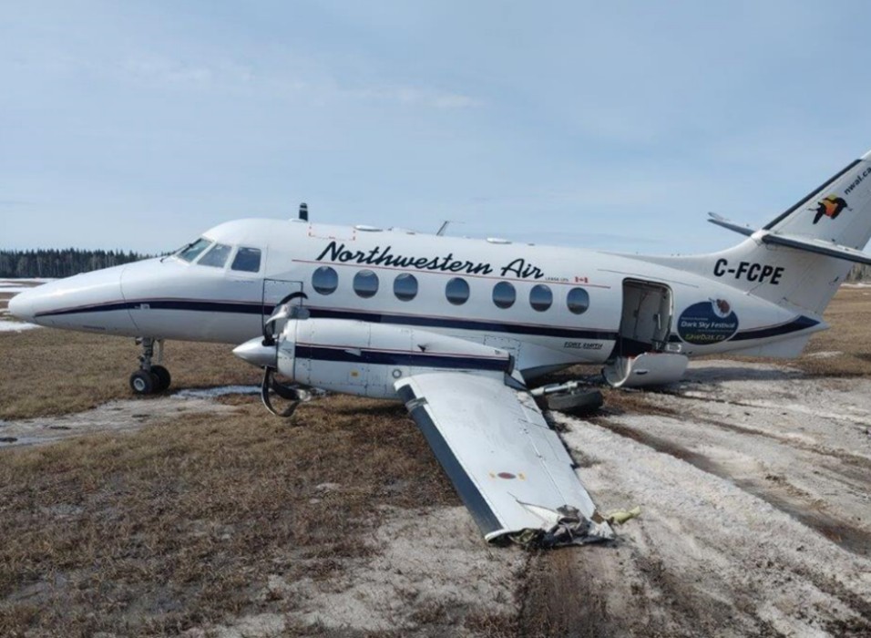 At 1025 Mountain Daylight Time on 14 April 2023, the Northwestern Air Lease Ltd. British Aerospace P.L.C. Jetstream Model 3112 aircraft (registration C-FCPE, serial number 825) departed Fort Smith Airport (CYSM), Northwest Territories, on a training flight (flight PLR732T) with the captain and the first officer on board. At 1227, the aircraft returned to the airport. Shortly after landing, the left main landing gear unit collapsed, and the aircraft veered off the runway. There were no injuries. The aircraft’s left main landing gear unit, engine, propeller, and wing tip, as well as its belly cargo pod, were significantly damaged.