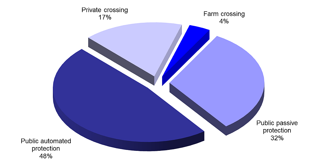 - Crossing accidents, by type and protection, 2006–2015