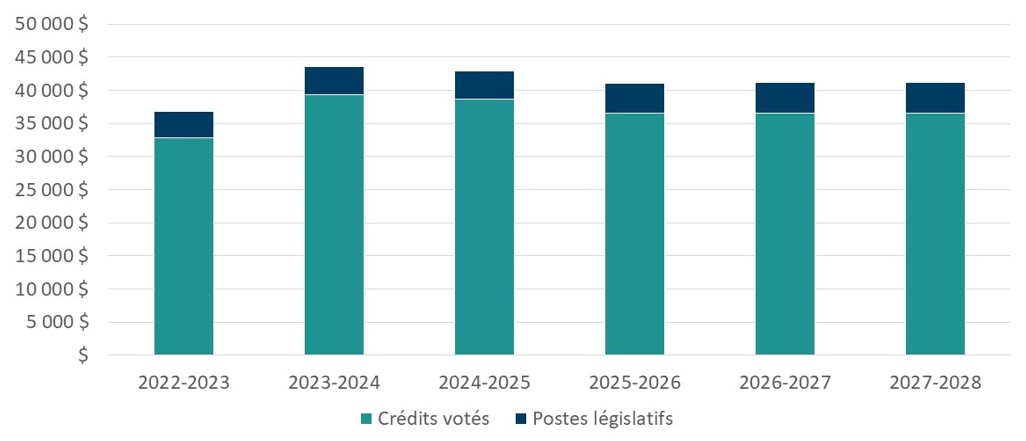 Cette section présente un aperçu des ressources humaines réelles et prévues du ministère pour la période de 2022‑2023 à 2027‑2028.