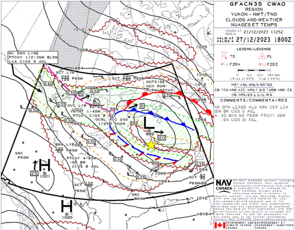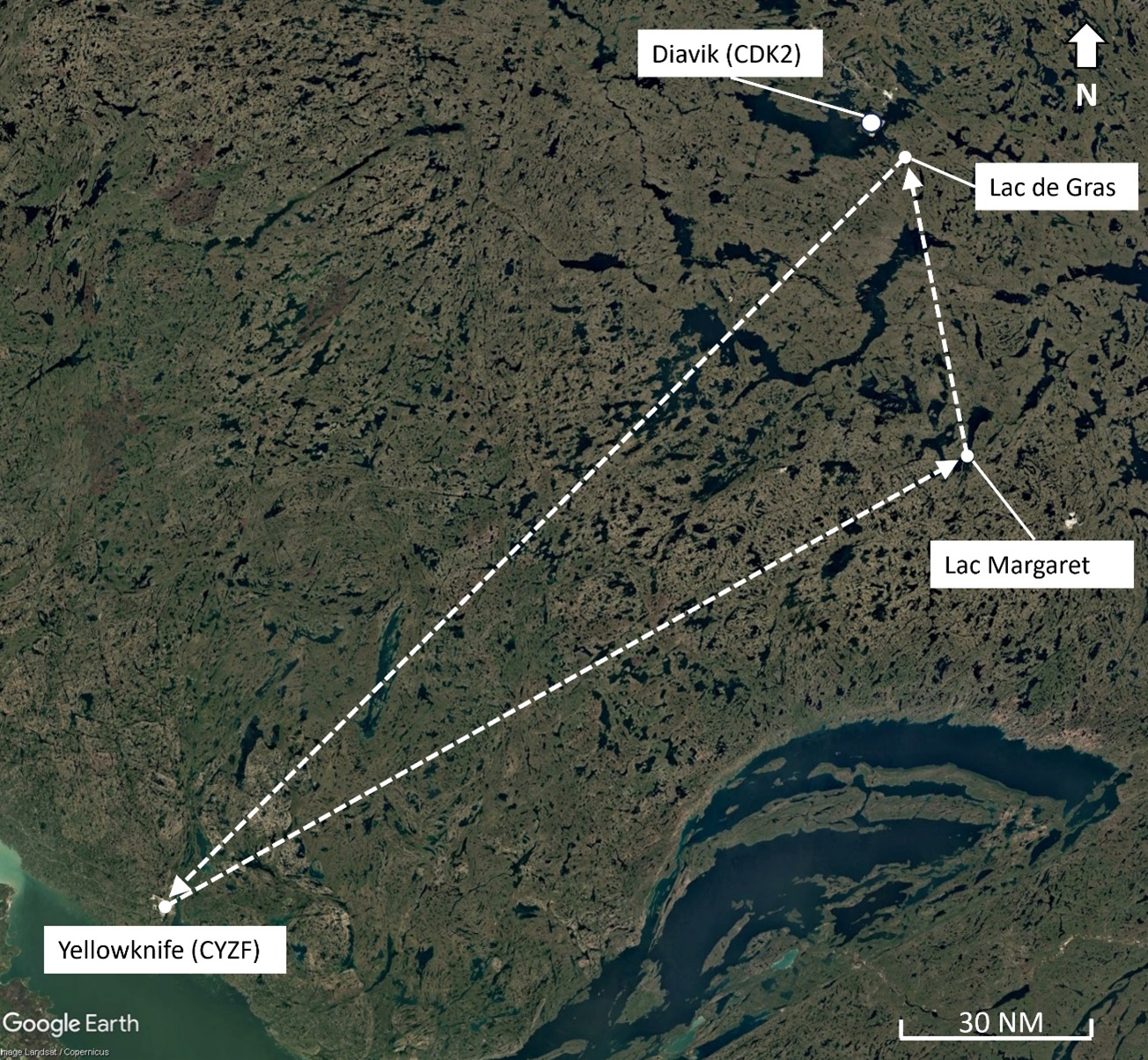 Le 27 décembre 2023, 2 aéronefs De Havilland Inc. DHC-6 Twin Otter series 300 (Twin Otter) d'Air Tindi Ltd. (Air Tindi) devaient quitter l’aéroport de Yellowknife (CYZF)Tous les lieux mentionnés dans le présent rapport sont situés dans les Territoires du Nord-Ouest, sauf indication contraire. à 10 hToutes les heures sont exprimées en heure normale des Rocheuses (temps universel coordonné moins 7 heures).. Les Twin Otter étaient chargés de transporter les travailleurs et les fournitures vers les camps situés au lac Margaret et au lac de Gras. Après avoir atterri au lac Margaret, un des Twin Otter devait retourner à Yellowknife tandis que l’aéronef C‑GMAS à l’étude, devait poursuivre son vol jusqu’au lac de Gras, puis retourner à CYZF.