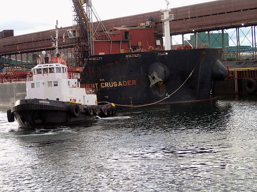 On 12 September 2014, the harbor tug "Vachon", while manoeuvring to berth the bulk carrier "Orient Crusader", made contact with the breakwater in Port Cartier, QC. Damage was reported to the tug and breakwater.