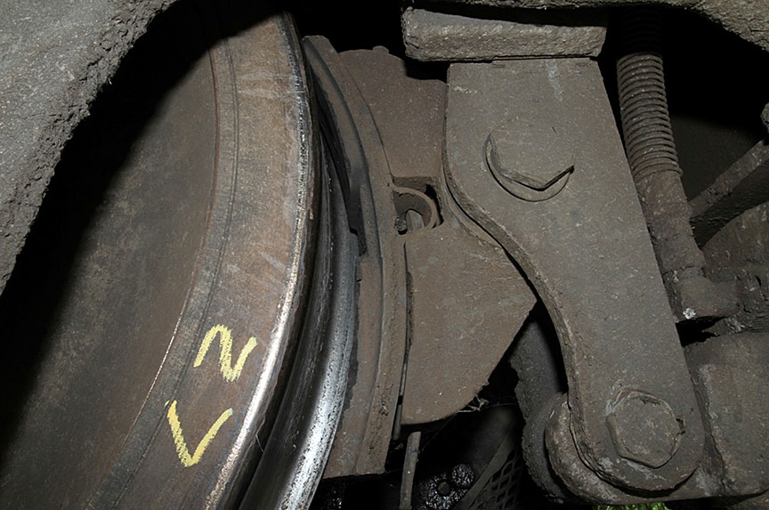 The Transportation Safety Board of Canada (TSB) Eastern Regional Operations – Rail/Pipeline requested that the TSB Engineering Laboratory conduct an examination of the locomotives’ and VB car’s wheels and brake shoes.