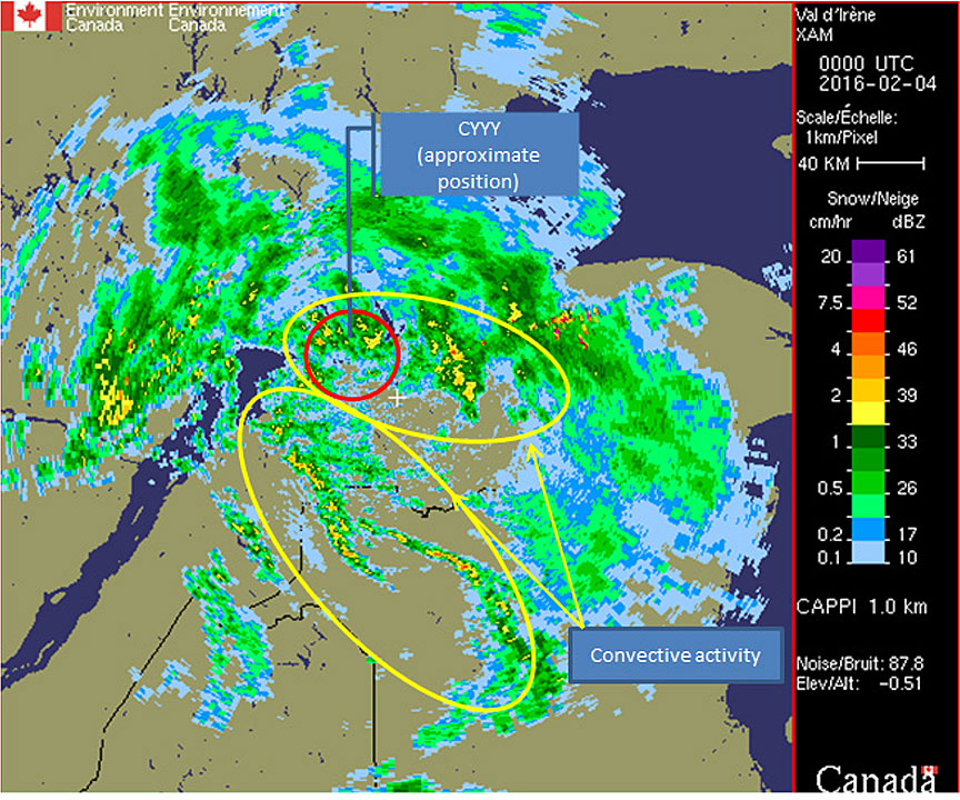 Environment Canada performed an in-depth analysis of the weather conditions affecting the CYYY area at the time of the occurrence. The following sections of the report are based on Environment Canada's analysis.Footnote 10