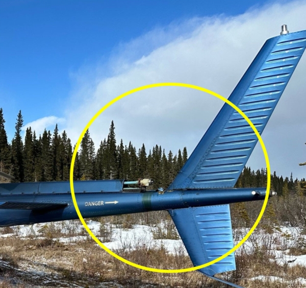 The snowmobile driver saw that the passenger was approaching the back of the helicopter, and tried to warn him by yelling and gesturing for him to stay away from the back of the helicopter. The passenger continued along the left side of the tail boom toward the back of the helicopter, past 4 antennas mounted below the tail boom, and past the left-side horizontal stabilizer (Figure 2). He then ducked under the tail boom, aft of the horizontal stabilizer, but forward of the tail’s vertical fin. As he crossed to the right side, he was struck by the spinning tail rotorWhen a helicopter’s tail rotor is spinning, it is difficult, if not impossible, to see. and was fatally injured. The impact caused the tail rotor and most of the tail rotor gearbox to detach from the helicopter.
