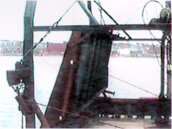 When the "RYANE & SISTERS" is scallop fishing, the two rakes are deployed from the stern and dragged over the scallop grounds. The loaded rakes are retrieved at regular intervals and their contents emptied onto the dump table. The empty rakes are then re-deployed for dragging while the deck crew sort through the contents of the dump table for scallops. When all of the scallops have been collected in plastic boxes, the table is raised on its hinges and sea-floor residue is dumped back into the ocean (see Appendix A, Photo. 6). Meanwhile, the deck crew shuck, clean, and bag the scallops for stowage in the fish hold and the cycle continues.
