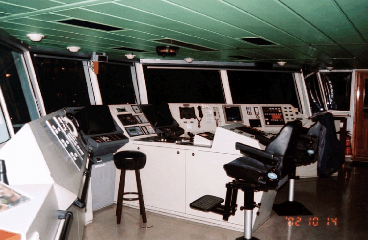 The Canadian Prospector is a Great Lakes bulk carrier with bridge, accommodation and main engine aft of the cargo holds. The bridge is equipped with an electronic chart system (ECS).