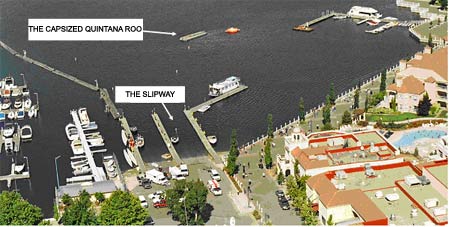 At the time of the occurrence, two parties of firefighters were having dinner on the patio at a pub about 100 m away. Seeing the pleasure craft capsize, they immediately dove in and pulled people from the water. One person was trapped in the washroom when the pleasure craft capsized. After being rescued, she was rushed to hospital, but died a few hours later. Other swimmers made their way to shore or to a nearby houseboat, which had been untied and floated out toward the Quintana Roo to serve as a platform for persons to cling to.