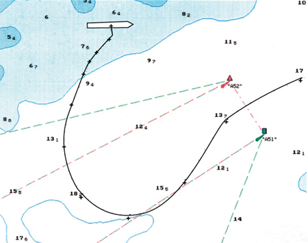 - The pilot's main focus was on when the electronic bearing line (EBL) would approach Pointe Fortier rather than the exact position of the vessel and, as a result, the vessel's turn was initiated too early, and the vessel subsequently did not have enough room to complete the manoeuvre as intended.