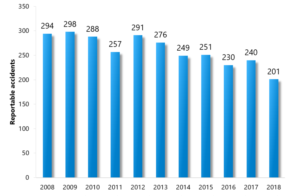 | Year | Reportable accidents |