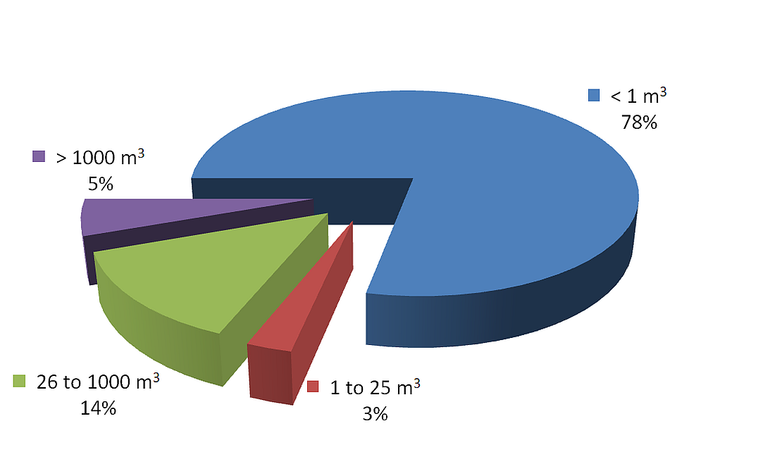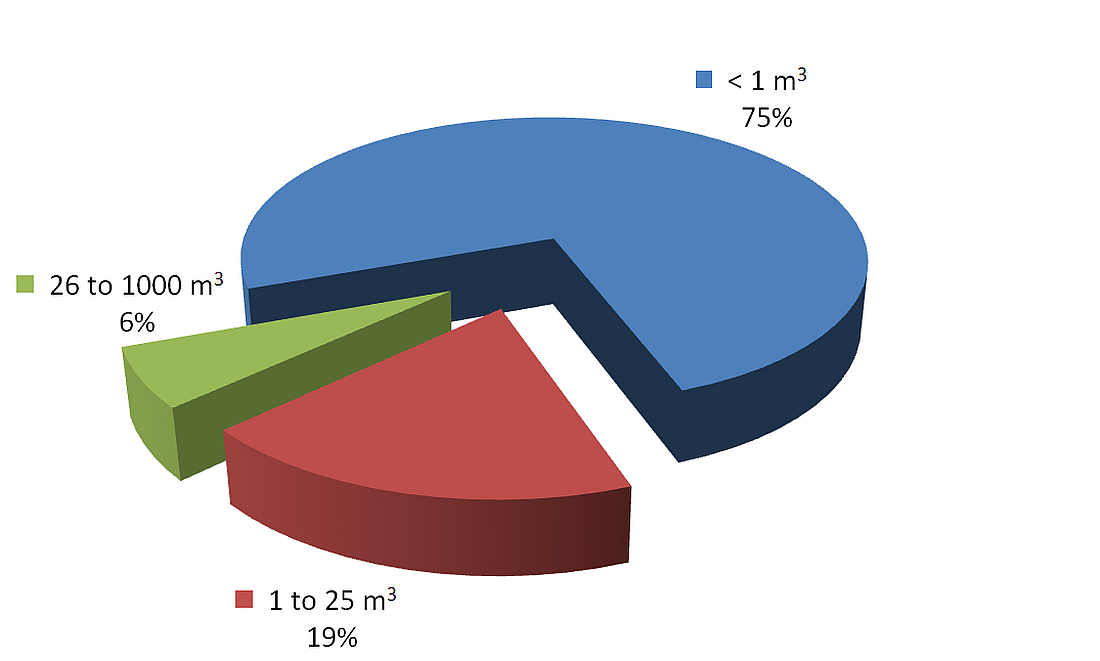 | Greater than 1000 cubic metres | 2 | 0 | 2 | 0 | 1 | 0 | 5 | 0 | 1 | 2 |
