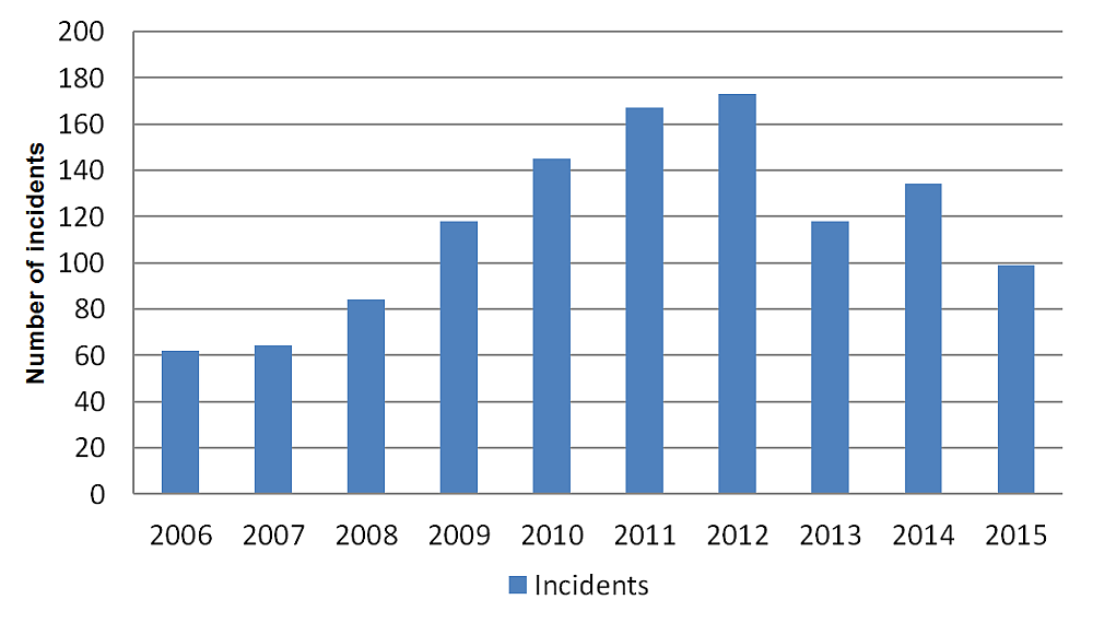 - Pipeline accidents and incidents by facility type, 2006–2015