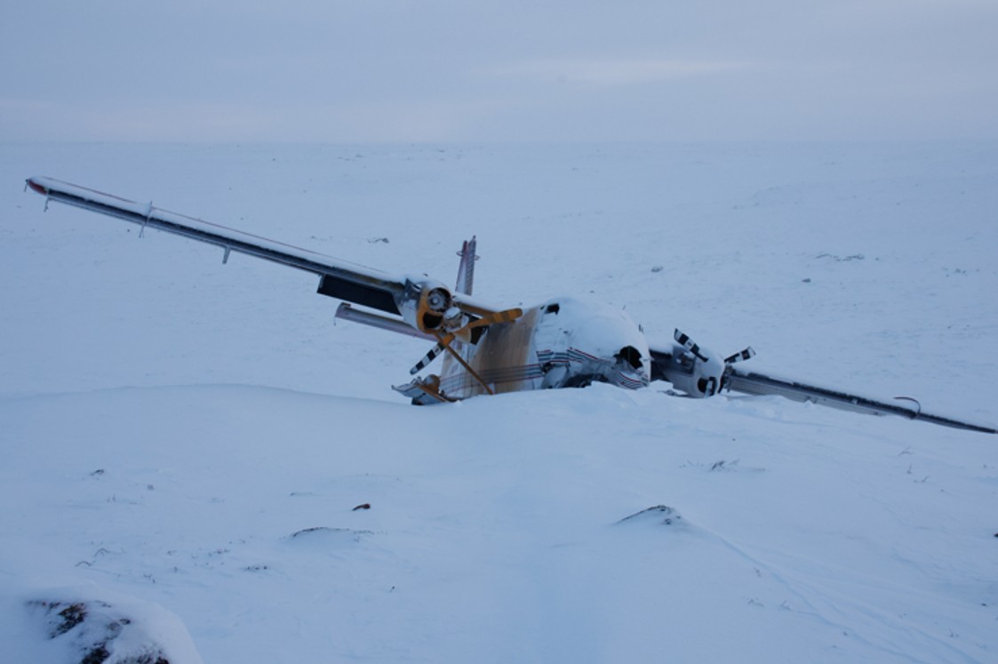 Du fait de la vitesse d’approche relativement faible du Twin Otter et du fort vent contraire lors de la dernière tentative d’atterrissage, tous les occupants ont survécu à l’impact avec la colline. Pendant la séquence d’impact, les casques d’écoute des pilotes ont été endommagés au point de devenir inutilisables. Le téléphone satellite à bord nécessitait l’utilisation d’un casque d’écoute. Par chance, dans cet événement, un passager avait un téléphone satellite personnel dans ses bagages, qui a été utilisé pour signaler la situation à Air Tindi et, par la suite, pour tenir les occupants informés de la mission de sauvetage en route vers le lieu de l’accident.