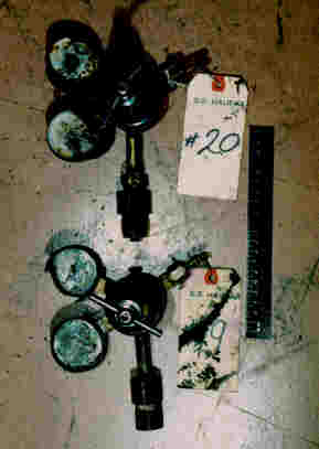 - Les régulateurs des bouteilles d'oxygène et d'acétylène étaient en partie fondus et calcinés.