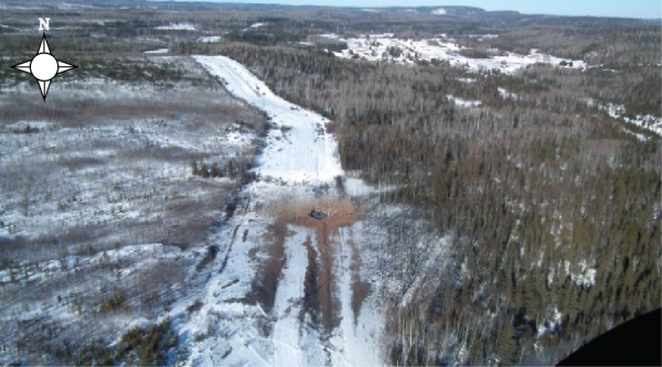 Près du lieu de l'événement, il y a trois canalisations parallèles enfouies à environ 0,914 m (3 pieds) de la surface et espacées d'environ 10 m (32 pieds). On y réfère comme étant les canalisations 100–1, 100–2 et 100–3. La canalisation qui s'est rompue était la 100–2. L'installation la plus proche en amont est la station de compression 75 (Nipigon, Ontario), située environ 37,5 km à l'ouest du lieu de l'événement. L'installation la plus proche en aval est la station de compression 77 (Jellicoe, Ontario), située environ 31,7 km à l'est du lieu de l'événement. À cet endroit, la canalisation 100–2 est classée comme étant de catégorie 1 selon la norme CSA Z662Note de bas de page 1. L'épaisseur de la paroi de la conduite est de 9,13 mm, et son diamètre extérieur est de 914,4 mm. La rupture s'est produite au niveau d'une conduite soudée à l'arc sous flux double qui a été posée en 1972.
