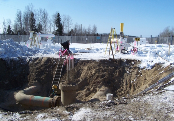 Pendant que le personnel de TransCanada s'occupait de la fuite de gaz naturel à la hauteur de la VCP 76-2:3, la canalisation 100–3 est demeurée hors service. Pour arrêter cette fuite, on a injecté une graisse spéciale dans la vanne de raccordement VCP 76-2:3. La VCP 76A-2:3 a également été graissée. Le 22 février, la remise en service de la canalisation 100–3 a échoué lorsque l'on a détecté une autre fuite de gaz naturel à la hauteur de la VCP 76-2:3. Par conséquent, la canalisation 100–3 entre les VCP 76 et VCP 76A a été fermée, isolée et évacuée pour arrêter la fuite de gaz dans la canalisation 100–2. TransCanada a alors installé une autre vanne et des brides pleines pour isoler la canalisation 100–3 de la canalisation 100–2 à la hauteur de la vanne de raccordement VCP 76-2:3 (Photo 4). À 9 h, le 25 février, après avoir confirmé qu'aucune autre fuite n'existait, la canalisation 100–3 a été remise en service. Le 27 février, TransCanada a repris ses activités normales de livraison de gaz par les canalisations 100–1 et 100–3.