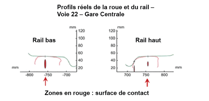 - L'absence de dévers ainsi que l'existence d'un nivellement transversal négatif à la sortie de la courbe ont augmenté les efforts latéraux exercés par les roues.