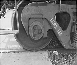 Outre les inspections visuelles, les chemins de fer ont doté le réseau ferroviaire de systèmes électroniques de détection en voie afin d'évaluer l'état du matériel roulant en cours de route. Habituellement, de tels systèmes se situent à une distance de 15 à 30 milles l'un de l'autre sur la voie principale. Chaque système de ce type comprend normalement un DBC, et certains comportent également des détecteurs de roues chaudes et/ou de pièces traînantes. Un DBC analyse, au moyen d'un détecteur infrarouge au-dessus duquel passe le train, chaque roulement à rouleaux pour tenter d'y déceler la présence de chaleur (Figure 3). Les capteurs de DBC sont habituellement réglés de manière à enregistrer la chaleur sur la partie extérieure de la cuvette, dans la zone du chemin de roulement du cône intérieur et de la bague d'appui des roulements à rouleaux des wagons. Aucune exigence réglementaire ne vise les DBC. Chaque chemin de fer établit et maintient ses propres seuils à l'égard des systèmes et des alarmes pour les roulements à rouleaux ayant surchauffé.