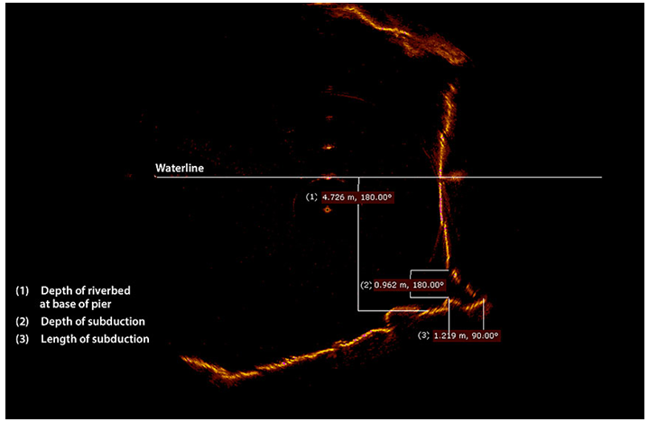 Les inspections sous l'eau pendant la crue étaient impossibles en raison du volume élevé des eaux troubles au débit rapide. On n'a pu déterminer l'étendue complète de l'affouillement qu'environ 2 mois après l'effondrement du pont, lors d'inspections visuelles et de relevés par sonar. Pendant la crue, le CP croyait que l'exploitation ferroviaire sur le pont était sécuritaire, car la géométrie du pont n'avait pas changé et que ce dernier n'avait jamais connu de problème d'instabilité ou d'affouillement.