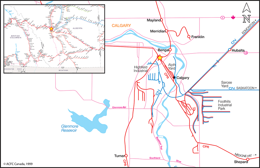 Le 18 février 2016, vers 5 h 46Note de bas de page 1, le train de marchandises 293-16 (le train) du Chemin de fer Canadien Pacifique (CP) est arrivé au triage Alyth à Calgary (Alberta) (figure 1) en provenance de Medicine Hat (Alberta). L'équipe avait pour instruction de garer les 39 wagons de tête dans la voie N11.