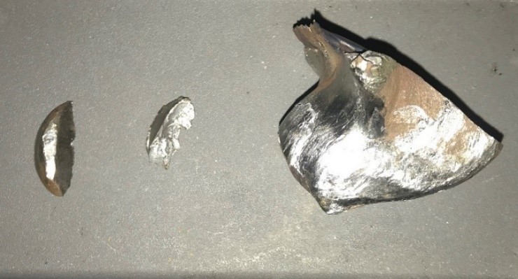 Le fragment examiné présentait une déformation plastique importante. En raison de la petite taille du fragment et de l’étendue des dommages subis, le mode de défaillance de la clavette d’attelage n’a pas pu être déterminé.