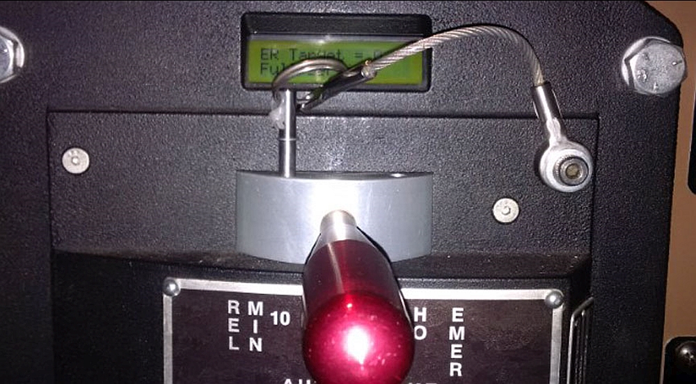 Le RSC des 2 locomotives n’était pas équipé d’une protection contre les dérives qui s’active lorsqu’elle détecte une vitesse prédéterminée, et n’était pas tenu de l’être. De plus, la poignée du frein automatique de la locomotive de tête n’était pas munie d’une goupille de sûreté qui aurait pu servir de mécanisme additionnel pour garder la poignée du frein automatique en place, une caractéristique que possèdent de nombreuses locomotives plus récentes (figure 7).